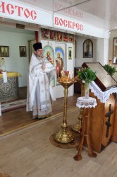По окончании богослужения настоятель поздравил причастников с принятием Святых Христовых Таин и обратился к молящимся со словами пастырского назидания.
