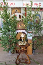 По окончании литургии настоятель совершил великую вечерню праздника Пятидесятницы с чтением коленопреклонных молитв, поздравил причастников с принятием Святых Христовых Таин, обратился к молящимся со словами пастырского назидания.