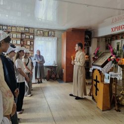 21 августа 2025 года, состоялась экскурсия в приход храма Восзенесения Господня в агрогороде Новая Гута отдыхающих детей из санатория «Василек». Настоятель иерей Павел Бригинец рассказал о храме, для чего нужно ходить в храм, значение свечи, а так же прогулялись на святой источник в честь св. Николая Чудотворца, на котором дети испили воды. В завершении был организован чай с печением.