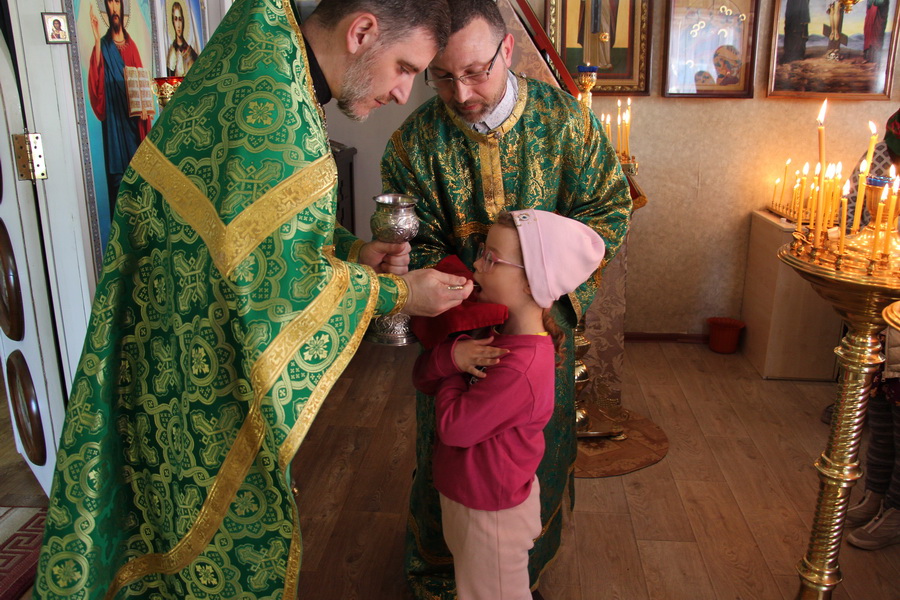 Настоятель сердечно поздравил всех с праздником, поблагодарил паству за совместную молитву и поздравил причастников с принятием Святых Христовых Таин.