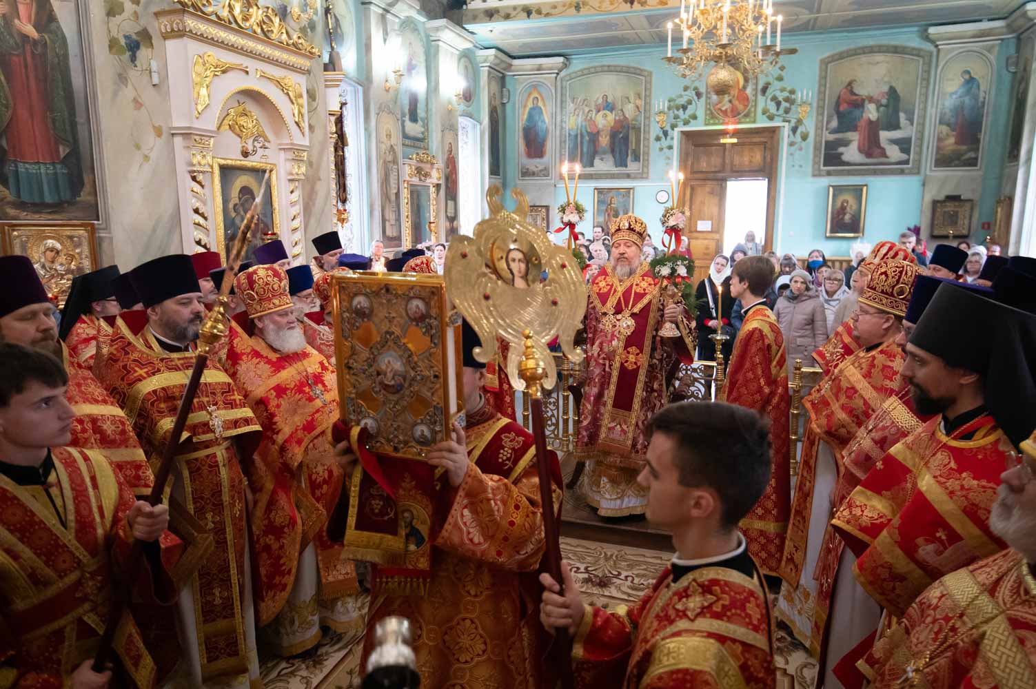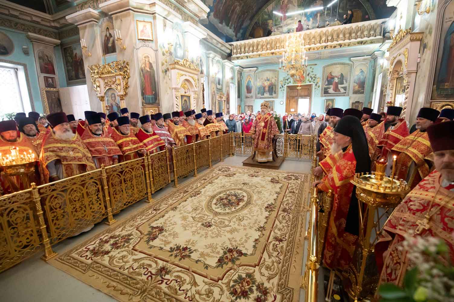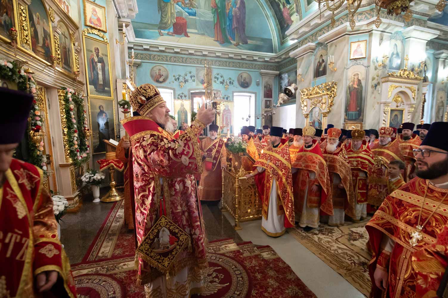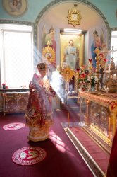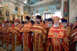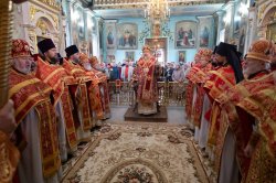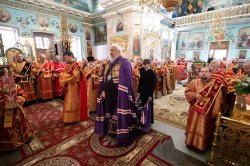 Его Высокопреосвященству сослужили благочинные округов, председатели епархиальных отделов, настоятели приходов и духовенство епархии.